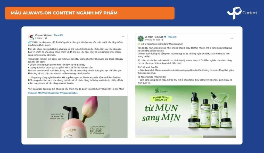 - Chia theo lớp chiến dịch: Always-on Content vận hành ổn định xuyên suốt, trong khi campaign đóng vai trò tăng cường ở những giai đoạn cao điểm.