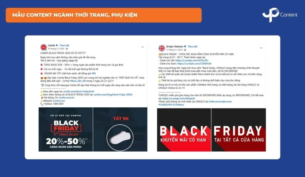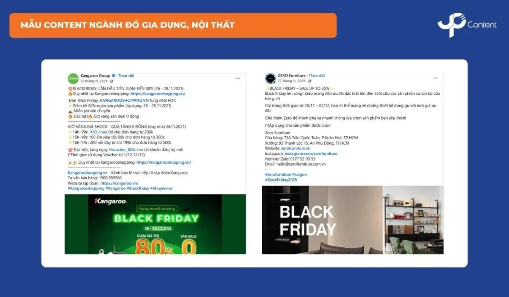 Phần dưới đây tổng hợp mẫu content Black Friday và Cyber Monday theo từng ngành, giúp doanh nghiệp tham khảo và áp dụng cho từng lĩnh vực cụ thể: