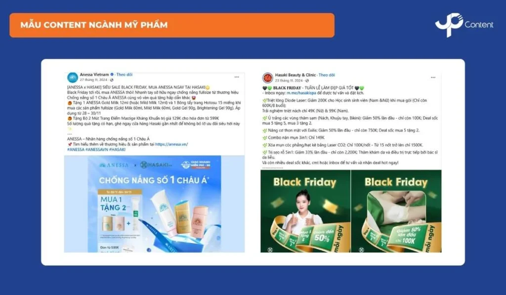 Với ngành mỹ phẩm và làm đẹp, niềm tin là yếu tố quyết định trước khi khách hàng mua sắm. Vì vậy, bài viết về Black Friday trong lĩnh vực này cần kết hợp hài hòa giữa ưu đãi, giáo dục và social proof để thuyết phục hiệu quả.