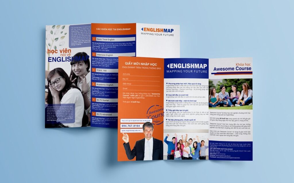 - Ấn phẩm phục vụ kinh doanh, marketing: Thiết kế profile trung tâm, thiết kế catalogue chương trình, brochure khóa học cần có nội dung và thiết kế đồng bộ với website và social media. Khi phụ huynh nhận ấn phẩm tại sự kiện, truy cập website, và xem fanpage, họ thấy cùng một hệ thống màu sắc và cách trình bày thông tin chuyên nghiệp. Bên cạnh đó, một mẫuthiết kế brochure ấn tượng sẽ là công cụ đắc lực giúp học viên nắm bắt nhanh chóng các thông tin ưu đãi và thế mạnh của từng khóa học cụ thể.