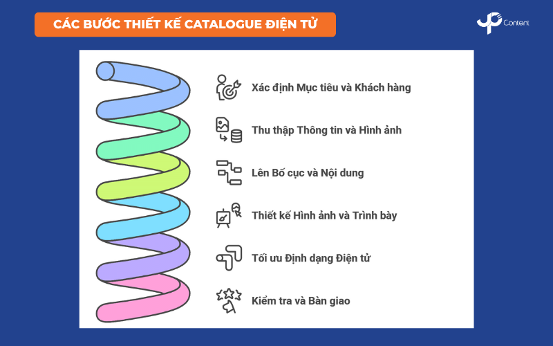 Để tạo ra một E – Catalogue chuyên nghiệp và hiệu quả, doanh nghiệp cần thực hiện theo quy trình có hệ thống gồm 6 bước sau đây.