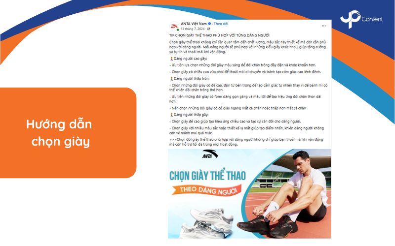 Hướng dẫn chọn giày phù hợp đóng vai trò then chốt trong việc giảm thiểu rủi ro mua hàng và tăng cường niềm tin khách hàng. Loại nội dung này cần giải quyết ba yếu tố chính: hình dáng bàn chân, hoạt động sử dụng và phong cách cá nhân. Đồng thời, đưa ra khuyến nghị cụ thể về loại đế và thiết kế phù hợp. Việc xây dựng những content hay, chuyên sâu và hữu ích như trên không chỉ giúp bán hàng mà còn định vị bạn là chuyên gia trong ngành.