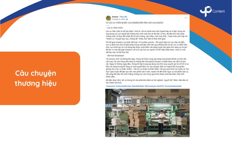 Bài viết kể chuyện,content giới thiệu công ty tạo ra kết nối cảm xúc sâu sắc giữa khách hàng và sản phẩm thông qua việc chia sẻ hành trình, giá trị và tầm nhìn của doanh nghiệp. Loại nội dung này đặc biệt quan trọng trong thị trường cạnh tranh cao như ngành giày dép, nơi mà sự khác biệt về chất lượng và giá cả ngày càng thu hẹp. Câu chuyện cần tập trung vào những trải nghiệm chân thực, thử thách đã vượt qua và cam kết với khách hàng.