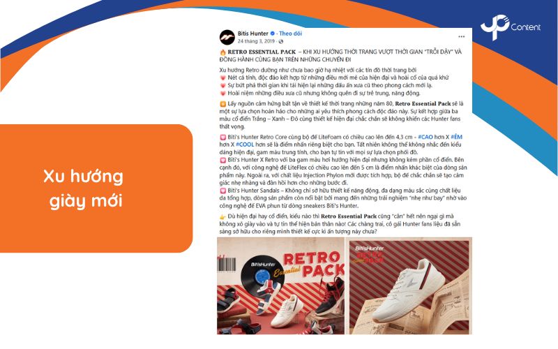 Nội dung về xu hướng giày mới tận dụng tâm lý muốn bắt kịp thời đại của khách hàng để tạo ra nhu cầu mua sắm tức thời. Mẫu content bán giày này cần cập nhật liên tục theo các mùa thời trang và sự kiện lớn trong ngành. Dữ liệu xu hướng từ các tuần lễ thời trang quốc tế, báo cáo của các viện nghiên cứu thời trang và phân tích từ các nền tảng mạng xã hội cung cấp cơ sở vững chắc cho nội dung.